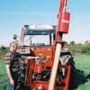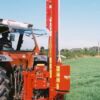 The Model 3 post driver is an easily maintained machine which attaches to the three point linkage and fits all models of tractor. A hitch is provided on the post driver so that it can be transported by a tractor while also towing a trailer.